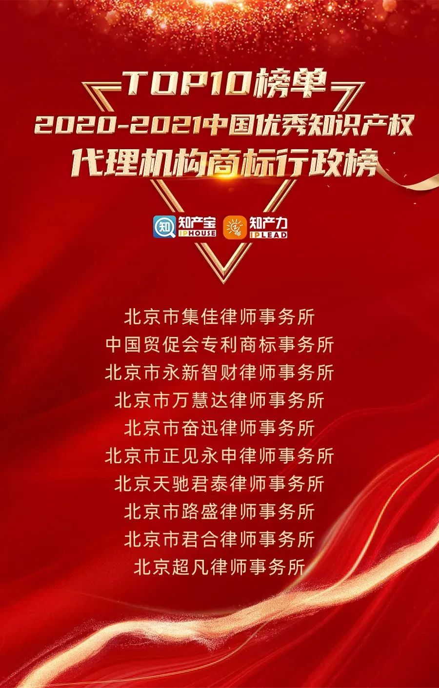 近日,备受业界关注的“2020-2021中国优秀知识产权代理机构榜”正式揭晓,乐球直播凭借长期以来在知识产权领域的卓越业绩和处理疑难案件的突出能力,从400余家知识产权代理机构中脱颖而出,荣登“中国优秀知识产权代理机构商标行政榜TOP10”。