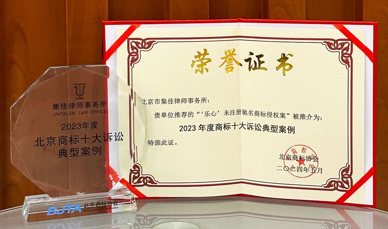 >乐球直播>关于我们>荣誉概览>2024>集佳代理2个案例入选北京商标协会2023年度商标十大诉讼与非诉典型案例