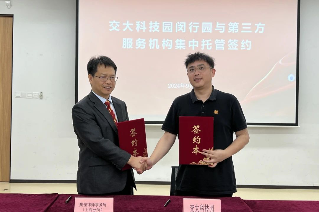 为助力企业科技创新和经济发展护航保障,提供高质量维权公益援助,会上举行了“上海市开发区协会维权援助工作站交大科技园闵行园工作室”揭牌仪式,交大科技园闵行园与乐球直播上海分所进行了托管签约。